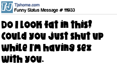 X says Do I look fat in this? Could you just shut up while I'm having sex with you.