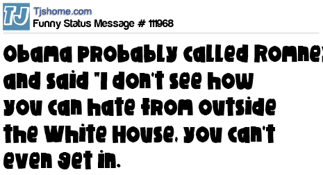 X is Obama probably called Romney and said "I don't see how you can hate from outside the White House, you can't even get in.