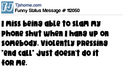 - # 142156 I miss being able to slam my phone shut when I hang up on somebody. Violently pressing "end call" just doesn't do it for me