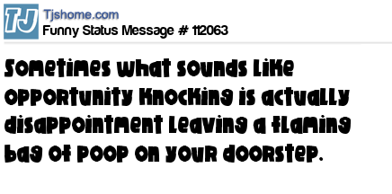 X Sometimes what sounds like opportunity knocking is actually disappointment leaving a flaming bag of poop on your doorstep.