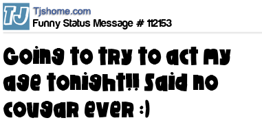 X is going to try to act my age tonight!! Said no cougar ever :)
