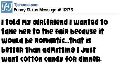 X I told my girlfriend I wanted to take her to the fair because it would be romantic...that is better than admitting I just want cotton candy for dinner.