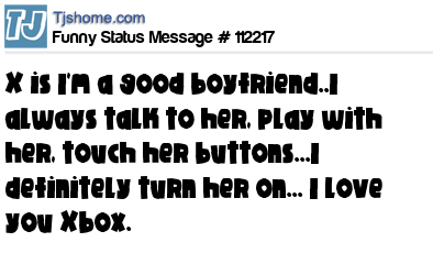 X X is I'm a good boyfriend..I always talk to her, play with her, touch her buttons...I definitely turn her on... I love you Xbox.