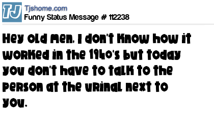 X is Hey old men, I don't know how it worked in the 1940's but today you don't have to talk to the person at the urinal next to you.