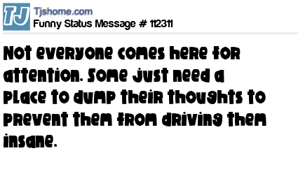 X says Not everyone comes here for attention. Some just need a place to dump their thoughts to prevent them from driving them insane.