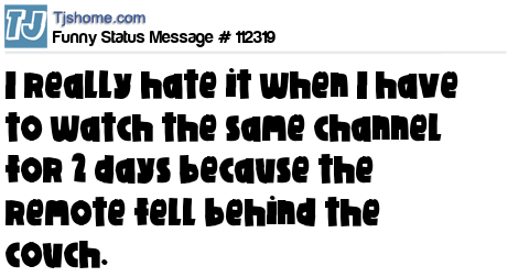 X says I really hate it when I have to watch the same channel for 2 days because the remote fell behind the couch.