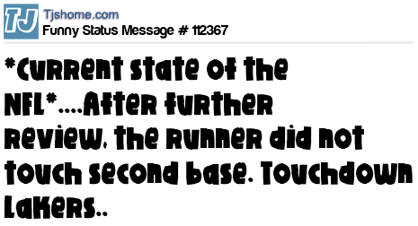 X *Current state of the NFL*....After further review, the runner did not touch second base. Touchdown Lakers..