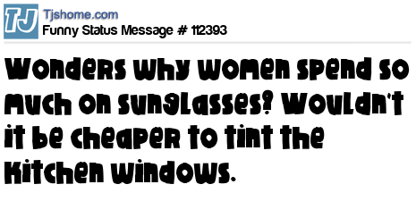 - # 101560 I don't understand why women spend so much money on sunglasses. It would be less expensive to just tint the kitchen window...