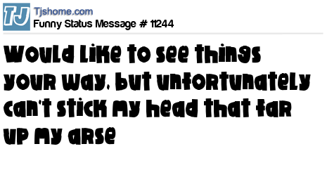 - # 80445 i'd like to see things your way but i'm not sure I can stick my head that far up my ass