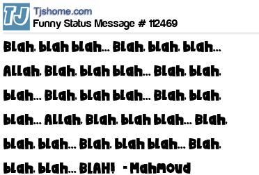X Blah, blah blah... Blah, blah, blah... Allah, Blah, blah blah... Blah, blah, blah... Blah, blah blah... Blah, blah, blah... Allah, Blah, blah blah... Blah, blah, blah... Blah, blah blah... Blah, blah, blah... BLAH! - Mahmoud Ahmadinejad
