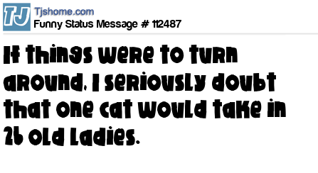 X If things were to turn around, I seriously doubt that one cat would take in 26 old ladies.