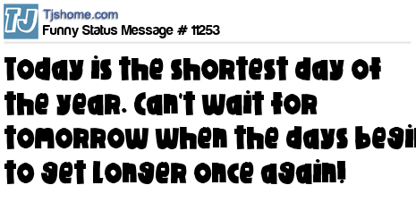 X Today is the shortest day of the year. Can't wait for tomorrow when the days begin to get longer once again!