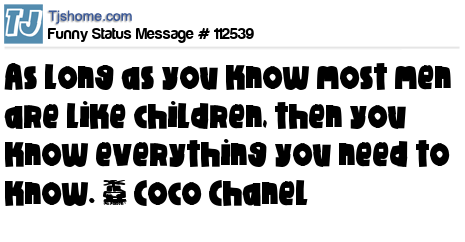 X says As long as you know most men are like children, then you know everything you need to know. ~ Coco Chanel