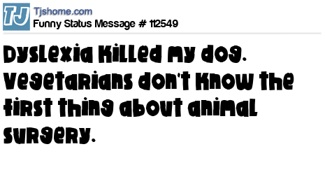 X Dyslexia killed my dog. Vegetarians don't know the first thing about animal surgery.