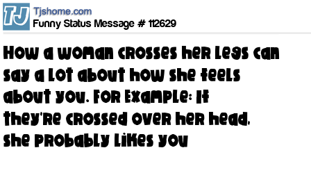 X says How a woman crosses her legs can say a lot about how she feels about you. For Example: If they're crossed over her head, she probably likes you