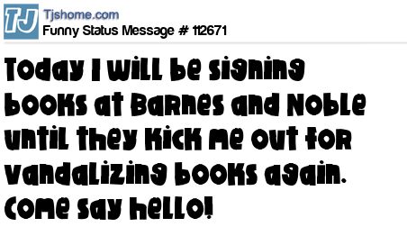 - # 178258 I'll be doing book signings today at Barnes & Noble until they kick me out for writing in random books.