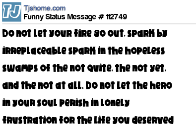 X is Do not let your fire go out, spark by irreplaceable spark in the hopeless swamps of the not quite, the not yet, and the not at all. Do not let the hero in your soul perish in lonely frustration for the life you deserved and have never been able to reach.