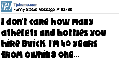X says I don't care how many athelets and hotties you hire Buick, I'm 40 years from owning one...