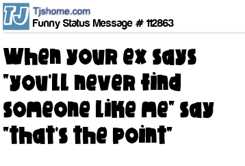 - # 88109 When your ex says "You'll never find anyone like me" reply with "That's the point"
