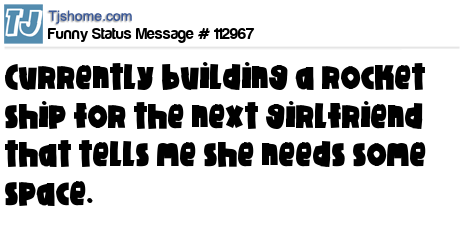 X says Currently building a rocket ship for the next girlfriend that tells me she needs some space.