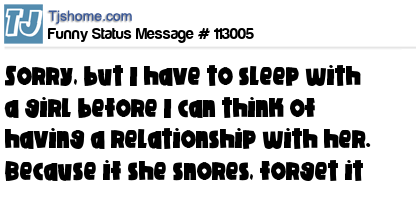 X says Sorry, but I have to sleep with a girl before I can think of having a relationship with her. Because if she snores, forget it