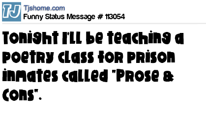 X is Tonight I'll be teaching a poetry class for prison inmates called "Prose & Cons".