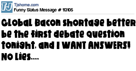 X says Global Bacon shortage better be the first debate question tonight, and I WANT ANSWERS! No lies....