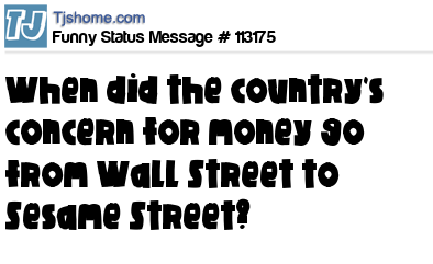 X says when did the country's concern for money go from Wall Street to Sesame Street?