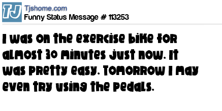 X is I was on the exercise bike for almost 30 minutes just now. It was pretty easy. Tomorrow I may even try using the pedals.