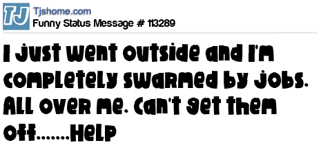 X says I just went outside and I'm completely swarmed by jobs. All over me. Can't get them off.......Help