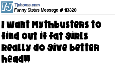 X is I want Mythbusters to find out if fat girls really do give better head!!