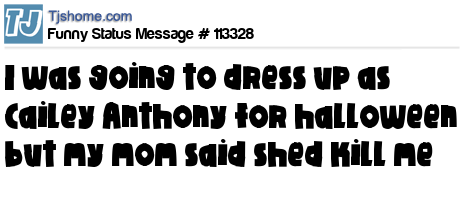 X is i was going to dress up as Cailey Anthony for halloween but my mom said shed kill me