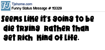 X is Seems like it's going to be “die trying” rather than “get rich” kind of life.