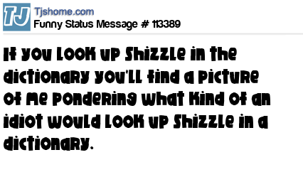X says If you look up Shizzle in the dictionary you'll find a picture of me pondering what kind of an idiot would look up Shizzle in a dictionary.