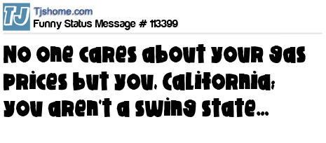 X says No one cares about your gas prices but you, California; you aren't a swing state…