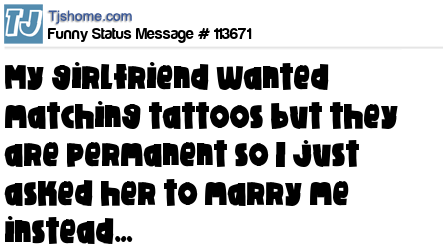 X says My girlfriend wanted matching tattoos but they are permanent so I just asked her to marry me instead…