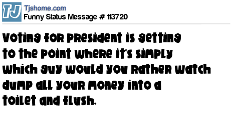 X says Voting for president is getting to the point where it's simply which guy would you rather watch dump all your money into a toilet and flush.