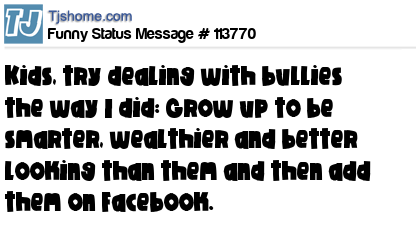 - # 107862 Best Way to deal with High School Bullies: Grow up to be smarter, richer and better looking than them and then add them on Facebook.