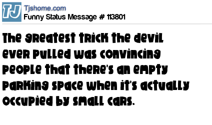 X The greatest trick the devil ever pulled was convincing people that there's an empty parking space when it's actually occupied by small cars.