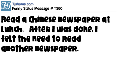 X read a Chinese newspaper at lunch. After I was done, I felt the need to read another newspaper.
