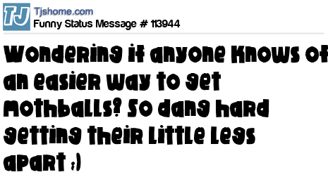X is wondering if anyone knows of an easier way to get mothballs? So dang hard getting their little legs apart ;)