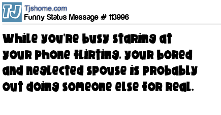 X says While you're busy staring at your phone flirting, your bored and neglected spouse is probably out doing someone else for real.