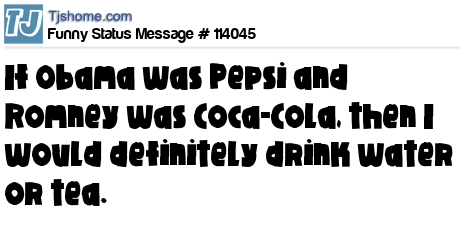 X If Obama was Pepsi and Romney was Coca-Cola, then I would definitely drink water or tea.