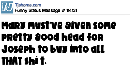 X says Mary must've given some pretty good head for Joseph to buy into all THAT shi t.