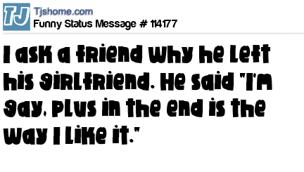 X I ask a friend why he left his girlfriend. He said "I'm gay, plus in the end is the way I like it."