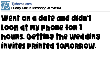 X says Went on a date and didn't look at my phone for 3 hours. Getting the wedding invites printed tomorrow.