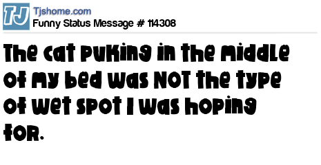 X says The cat puking in the middle of my bed was NOT the type of wet spot I was hoping for.