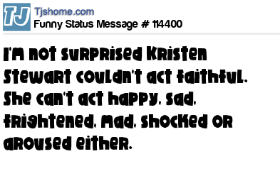 X says I'm not surprised Kristen Stewart couldn't act faithful. She can't act happy, sad, frightened, mad, shocked or aroused either.