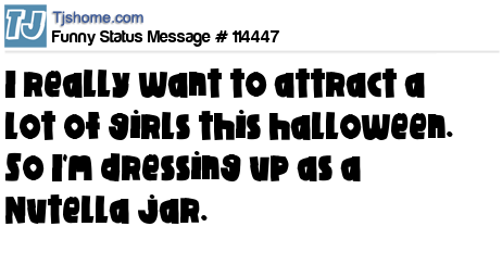 X says I really want to attract a lot of girls this halloween. So I'm dressing up as a Nutella jar.