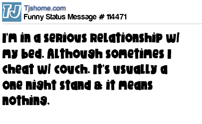 - # 81704 Tired of being single? Go sleep on the couch for a night and remember what it feels like to be in a relationship.